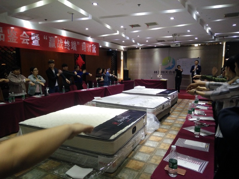 2018 年4月福悦携手深圳舒伯特睡眠研发中心,在长沙邀约全省福悦经销商与金牌导购一起共同体验养生睡眠新品,并就养生睡眠产品的研发思路与推广模式做系统的分析与培训。